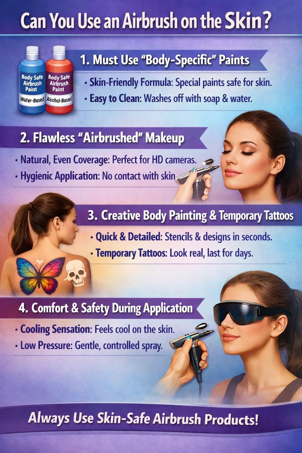 একটি ব্যবহার করে এয়ারব্রাশ ত্বকে শুধুমাত্র হাত প্রয়োগের দ্বারা অতুলনীয় বিশদ স্তর অর্জন করে না, তবে অবিশ্বাস্যভাবে বাস্তবসম্মত ভিজ্যুয়াল এফেক্টও তৈরি করে। যাইহোক, যেহেতু ত্বক মানবদেহের অংশ, তাই কিছু অত্যন্ত গুরুত্বপূর্ণ বিবেচনা রয়েছে: